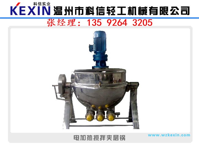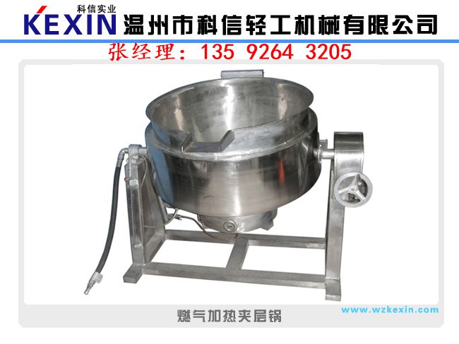 夾層鍋又名蒸汽鍋、蒸煮鍋、夾層蒸汽鍋。通常由鍋體和支腳組成。鍋體是由內外球形鍋體組成的雙層結構形式,中間夾層通入蒸汽加熱。有固定式、可傾式、攪拌式等樣式。夾層鍋具有受熱面積大、熱效率高、加熱均勻、液料沸騰時間短、加熱溫度容易控制、外型美觀、安裝容易、操作方便、安全可靠等特點。夾層鍋廣泛應用于各類食品的加工,也可用于大型餐廳或食堂熬湯、燒菜、燉肉、熬粥等,是食品加工提高質量、縮短時間、改善勞動條件的良好設備。